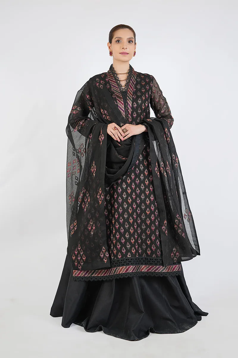 Color Type: Black Shirt: DC Air Jet Lawn 2.5 Meter Dupatta: Chiffon Self 2.5 Meter Shalwar: Air Jet Cambric 2.5 Meter