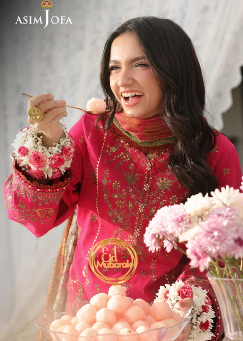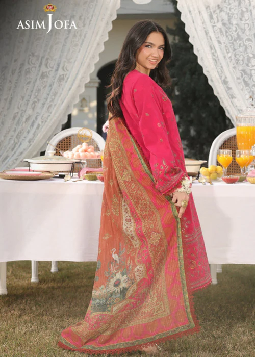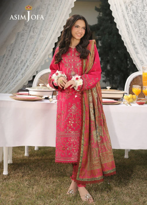 Additional Description: 1 pcs embroidered center panel on dyed jacquard 1 pair embroidered front left/right kali on dyed jacquard 1 pair embroidered sleeves with border on dyed jacquard 1 pcs embroidered front daman border on dyed jacquard 1 pcs embroidered back on dyed jacquard 1 pcs embroidered back border on dyed jacquard 1 pcs embroidered chaak border on dyed jacquard 2.5 meter digital printed trouser 2.5 meter digital printed fancy zari munar dupatta