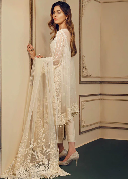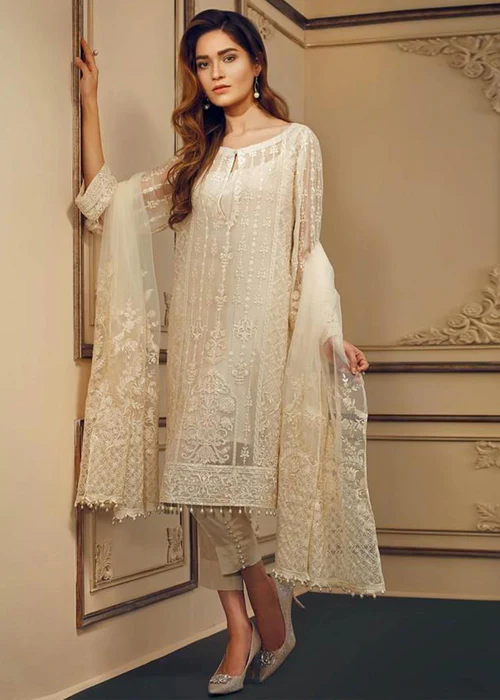 Additional Description: Embroidered Front Panel : 0.30 Yard Embroidered Side Panel : 0.56 Yard Embroidered Back : 1.25 Yard Embroidered Sleeves : 0.75 Yard Embroidered Sleeves Patch : 1.10 Yard Embroidered Front, Back Patch : 2.00 Yard Embroidered Net Dupatta : 2.5 Yard Trousers : 2.50 Yard