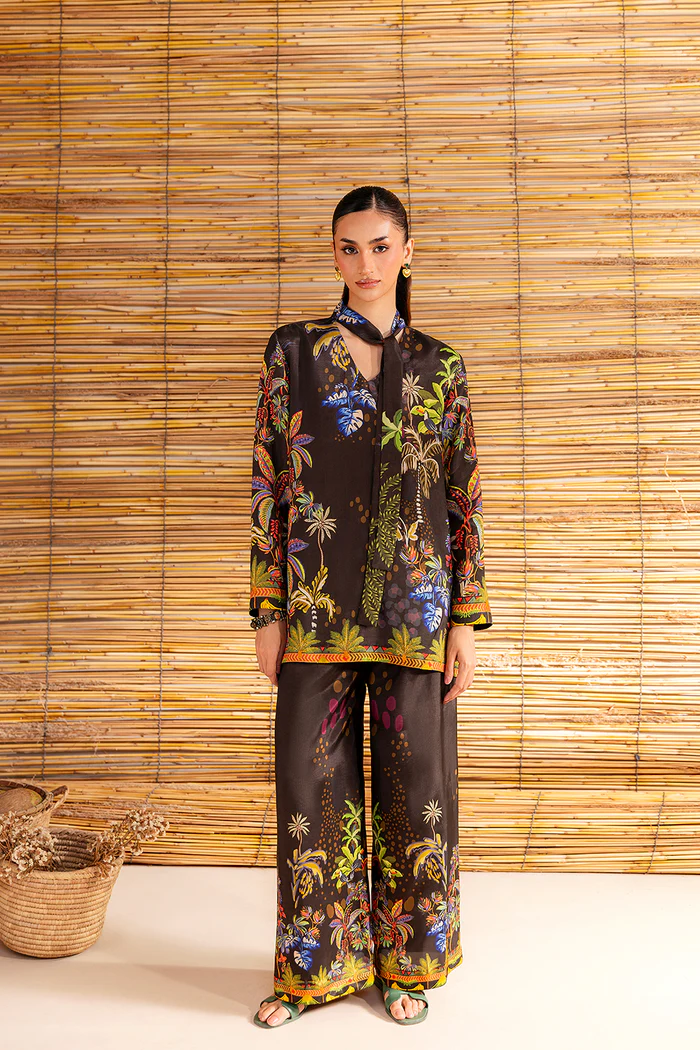 Style: Straight cut tunic with relaxed silhouette Fabric: Crepe silk Base Color: black